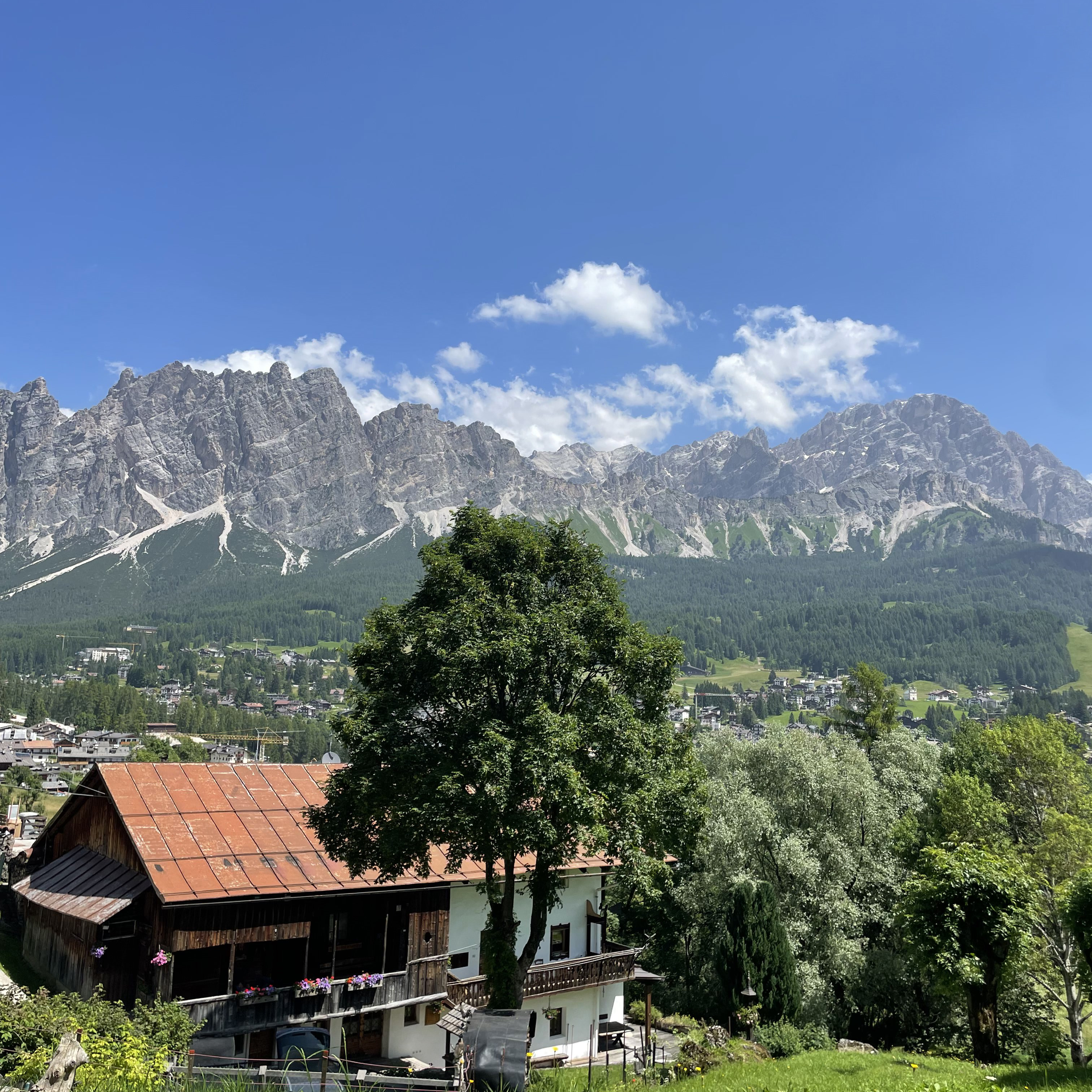 Wat ik hier vooral fijn vond, was de variatie: de ene keer rij je tussen rotswanden, dan weer langs groene flanken en daarna door een dorpje met houten balkons en bloembakken. En altijd opnieuw die Dolomieten-pieken op de achtergrond. Je weet oprecht niet waar eerst kijken.